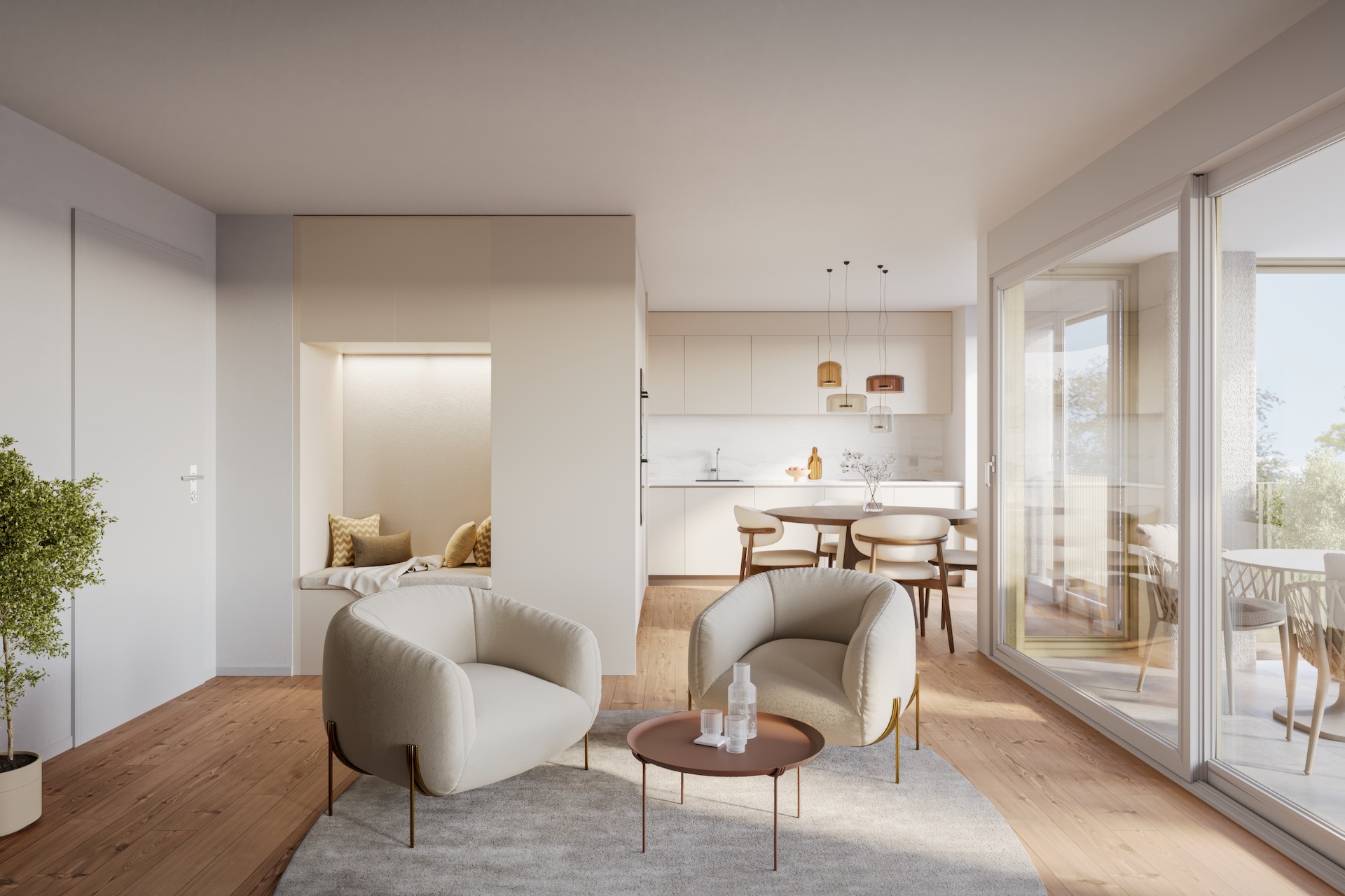 Jede Wohnung versteht sich als Rückzugsort mitten in einem urbanen Umfeld. Reduziert im Ausdruck, klar in der Struktur und flexibel nutzbar – für unterschiedliche Lebensphasen und individuelle Wohnbedürfnisse.